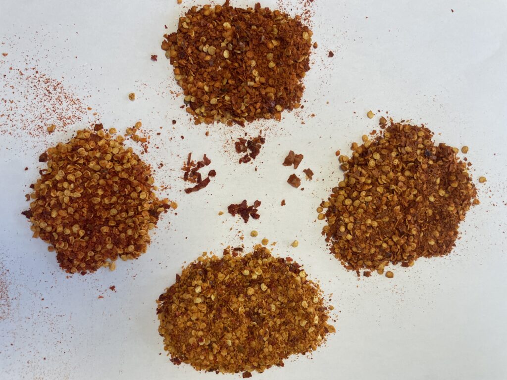 Red chili flakes are simply crushed dried chilies. However, it’s not that simple. In the commercial world, people decide which type of chili to use to make red chili flakes, the size of the flakes, their color and spiciness, whether they contain seeds, and the seed content, among many other factors, based on specific market conditions.
